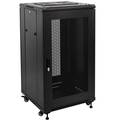 19" rackkast van het merk RackMatic MobiRack, 22U hoog en buitenafmetingen in mm van 600 (breedte) x 800 (diepte) x 1160 (hoogte). Gemaakt van hoogwaardig SPCC-staal, 2 mm dik, gelakt in zwart RAL9004. Professionele prestaties en geschikt voor de montage van serverruimtes in 19" racks.